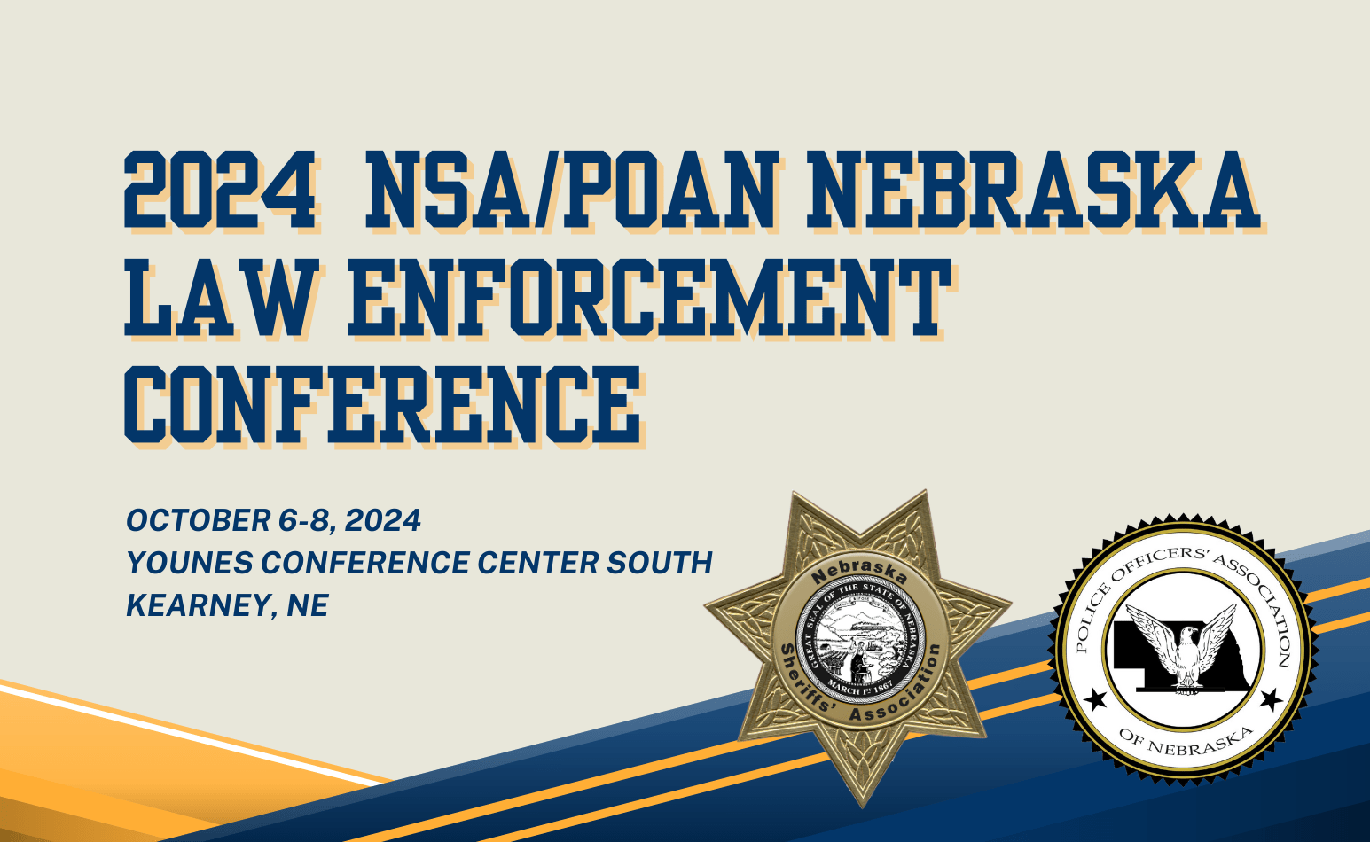 2024 VENDOR HALL IS FULL SAVE THE DATE: 2025 NSA/POAN Conference, October 5-October 7, 2025 Connect with law enforcement professionals across the state at the 2024 NSA/POAN Conference on October 6-8, 2024 in Kearney, NE! Join us in October in Kearney, Nebraska for the Nebraska Sheriffs’ Association and the Police Officers’ Association of Nebraska annual conference. The exhibit hall provides law enforcement professionals the opportunity to obtain the latest information on equipment and services for use in their communities. Sheriffs, Police Chiefs, Jail Administrators, and other law enforcement professionals will be seeking information on the latest equipment and services for use in their agencies or correctional institutions. We would like to invite your company to take advantage of this great networking opportunity. Must register before Sept. 13, 2024 to be included on printed materials! Cancellation Policy: A refund, less a $25 administrative fee, will be given for all written requests postmarked by August 31, 2024. Requests received after that date will be reviewed by the NSA/POAN Conference Committee. In the unlikely event the 2024 Conference is cancelled due to uncontrollable circumstances, your payment will be considered a donation to the NSA/POAN Conference. Schedule of Events SUNDAY, OCTOBER 6, 2024 MONDAY, OCTOBER 7, 2024 TUESDAY, OCTOBER 8, 2024